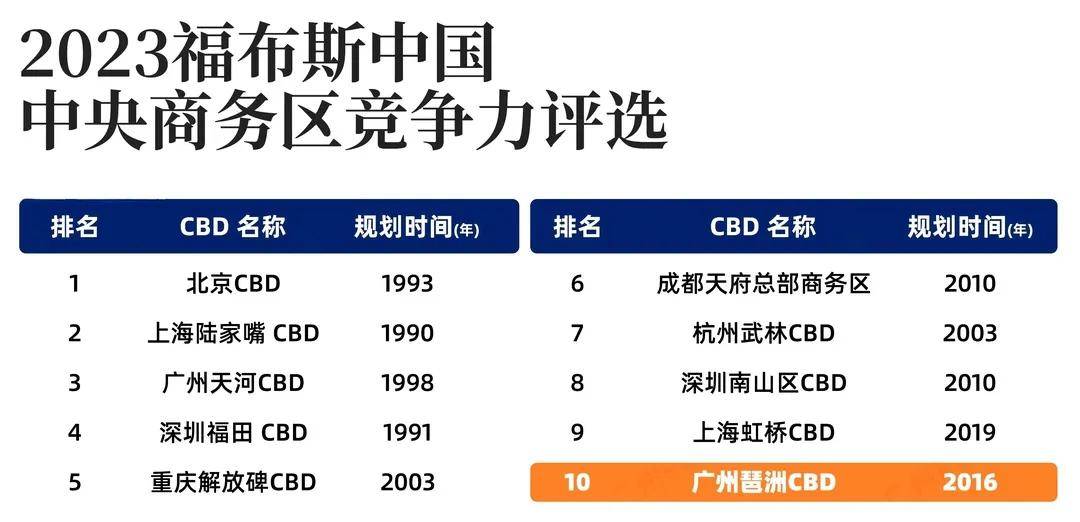 去年,琶洲更打败全国129座知名CBD,入选福布斯中国全国十强中央商务区,而且是榜单中最年轻的CBD。